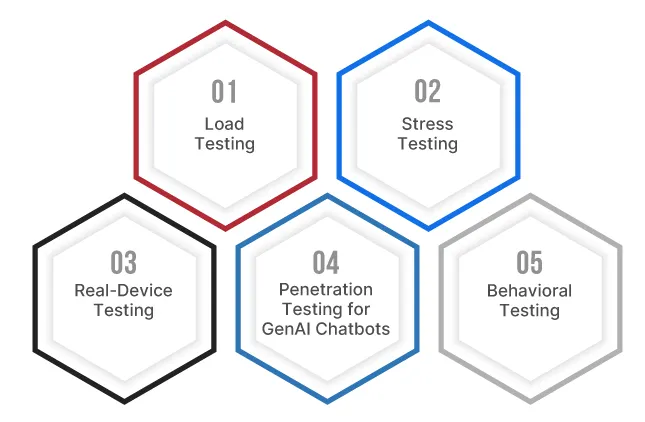 Test AI responses for consistency and context-awareness, minimizing errors like hallucinations or irrelevant replies. Combine this with penetration testing to uncover vulnerabilities, protect sensitive customer information, and maintain trust under heavy usage. Combine performance testing with security testing to validate end-to-end chatbot resilience.