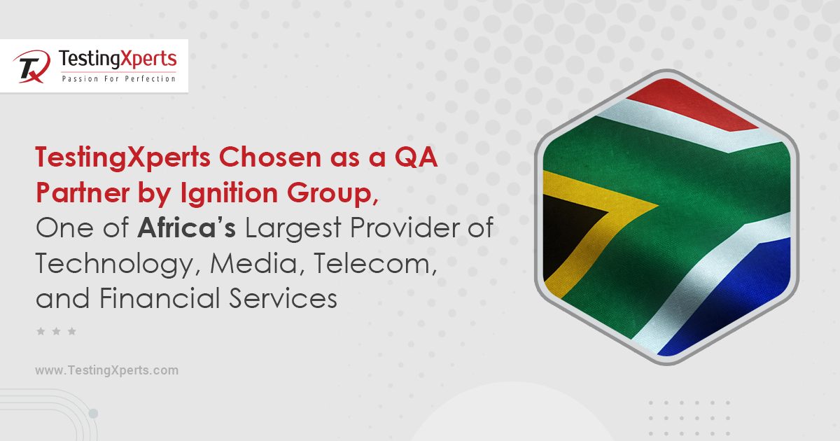 TestingXperts (Tx), a next-gen specialist QA and software testing services company, announced that it had been chosen as a QA partner by Ignition Group, one of Africa’s largest providers of Technology, Media, Telecom, and FinTech. The client is headquartered in Durban, South Africa, has been serving around the globe due to its aligned cultural affinity and operating philosophy with local and Western markets, including the United States, United Kingdom, and Australasia.